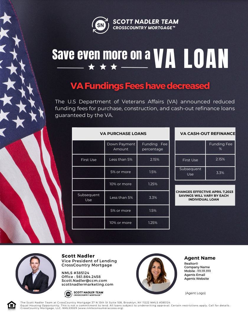 The U.S Department of Veterans Affairs (VA) recently announced reduced funding fees for purchase, construction, and cash-out refinance loans guaranteed by the VA.